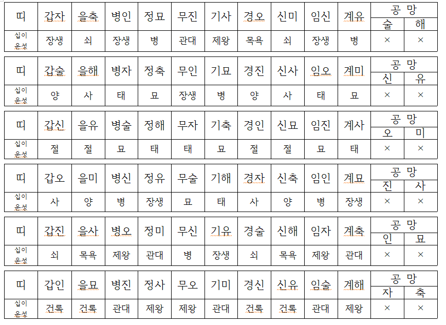 1. 일간에서 4개의 지지를 보아 12운성으로 양일생은 목욕, 음일생은 병이 되는 것이 도화이다. 양일생은 갑, 병, 무, 경, 임에 해당하고 음일생은 을, 정, 기, 신, 계이다. 아래 표는 십이운성표이다. 자신이 해당되는 게 있는 지 알아보자.