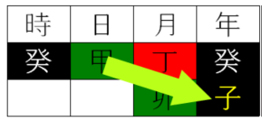 3. 도삽도화 : 월일시의 지지에서 보아 연지가 삼합의 목욕에 해당하는 것을 말한다. (함지살)