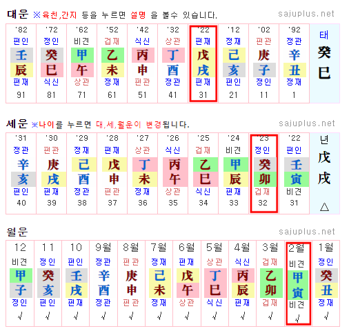 대개 잘 맞는 운은 관성운이 아주 좋아 대운이나 세운, 월운이나 일진에서 관성운이 드는 때는 아주 길하다.