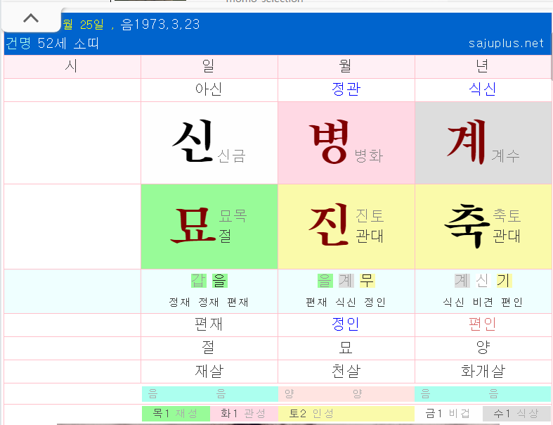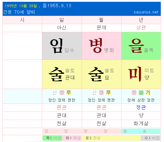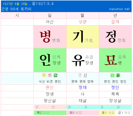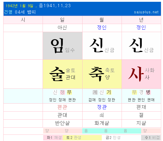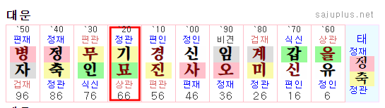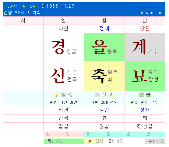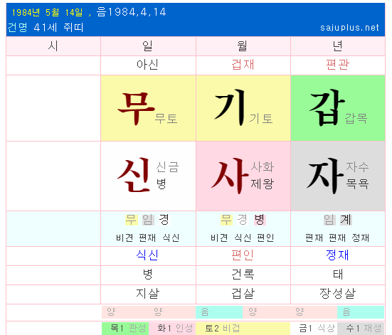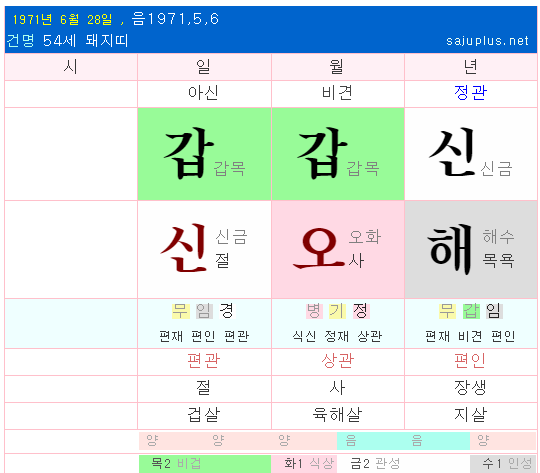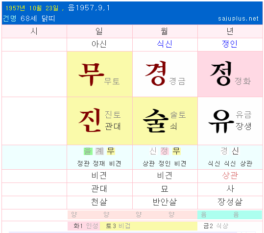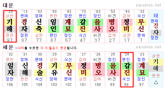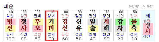 하지만 계유대운으로 건강에 문제가 생길 대운이니 몸 상하지 않도록 건강검진도 미리미리 받아두고 조심해야 할 것.